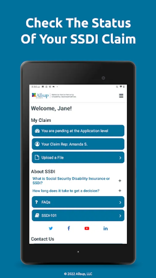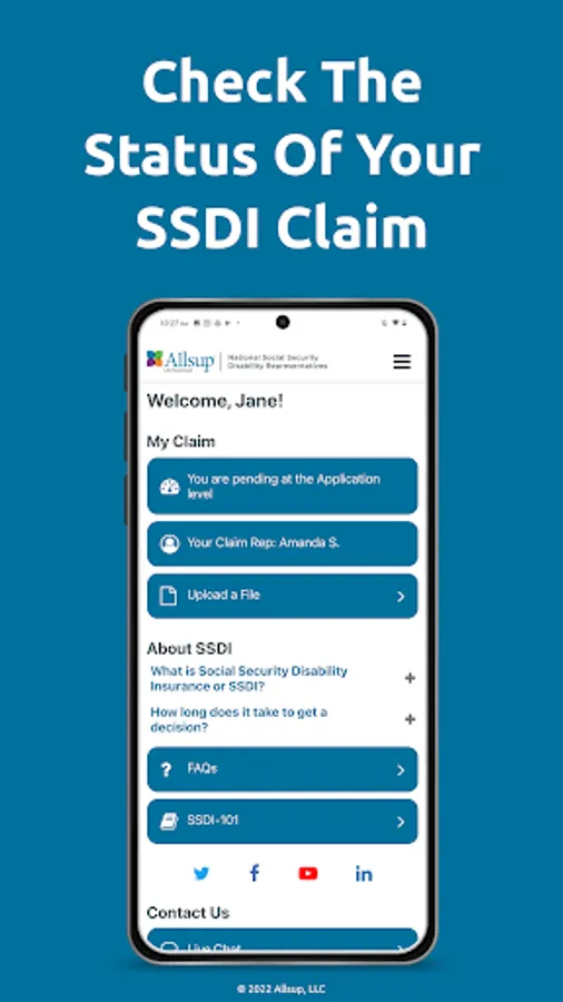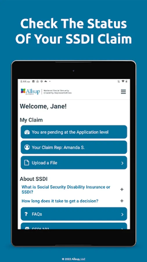 As a client of Allsup and our Social Security Disability Insurance (SSDI) representation, you can check on the status of your Social Security disability claim and submit updates to Allsup to assist in your case.