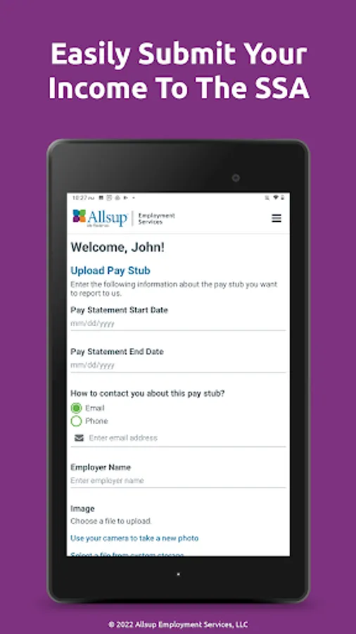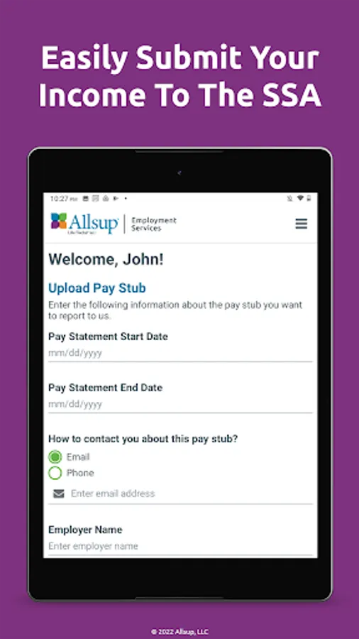 As a client of Allsup Employment Services (AES), which is a Social Security-approved Employment Network for the Ticket to Work program, you can securely submit your pay statements to AES.