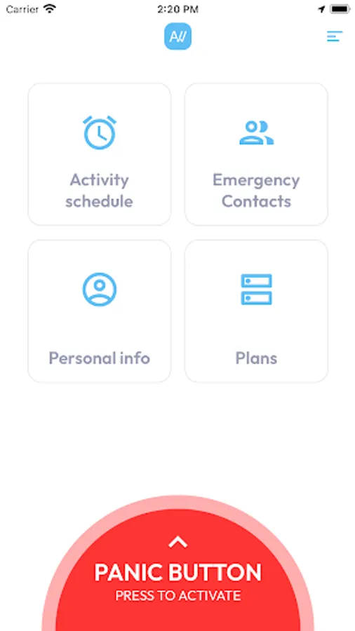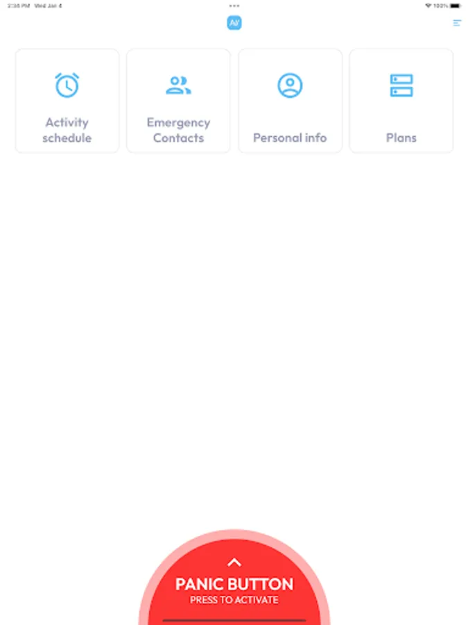 There is a panic button that can be activated to notify the user's emergency contacts in case of an emergency.