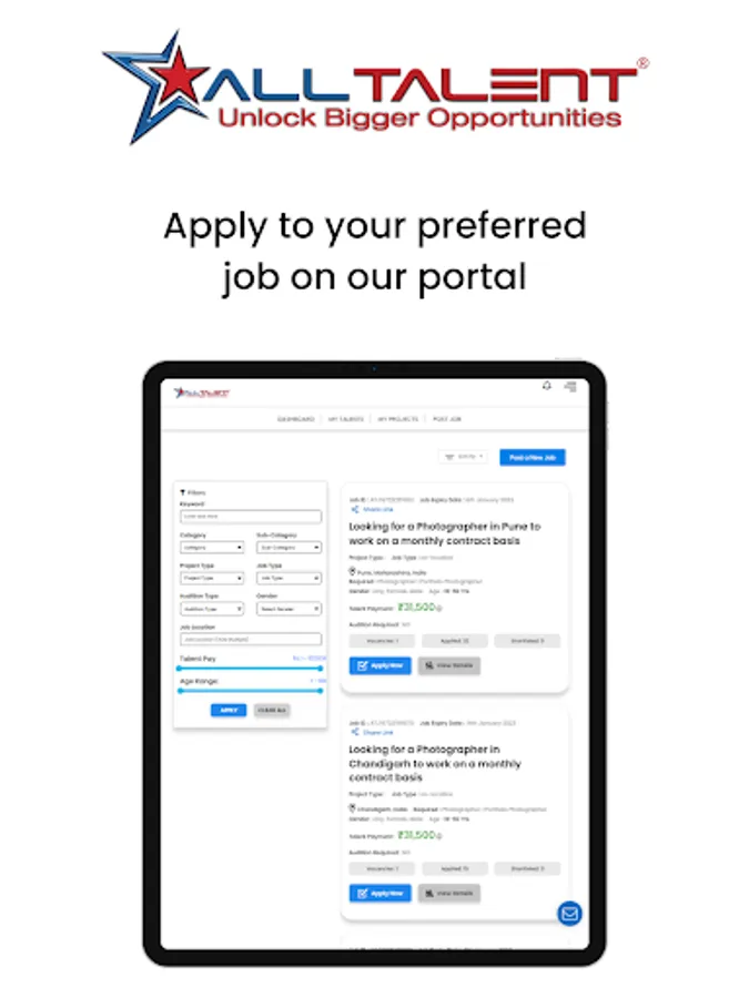 We built All Talent as a web portal that allows talent of all kinds to find high-quality jobs in the entertainment industry. Talent can find jobs with production houses, directors and brands across the world. The work they get is purely based on previous projects and ratings. Similarly, production houses and casting agents can find good talent with no hidden costs on our portal.