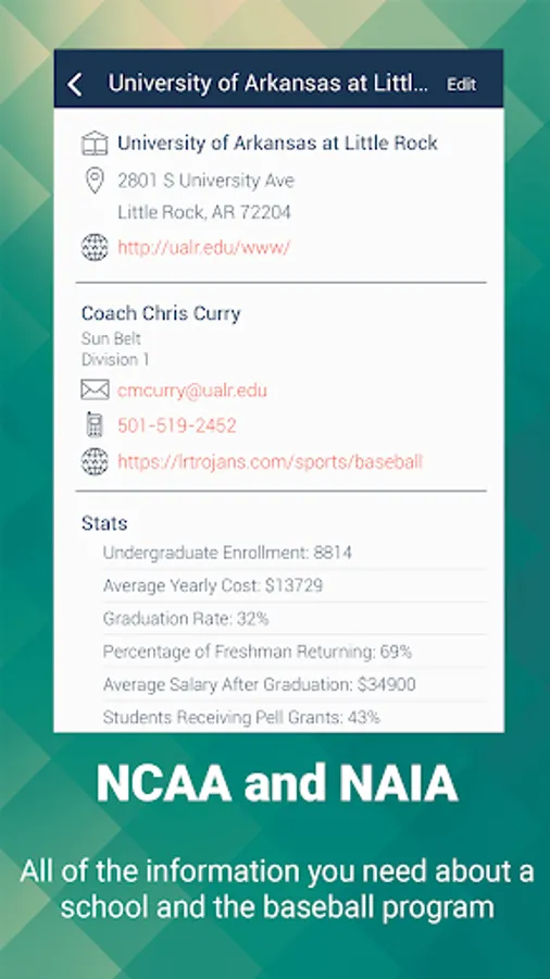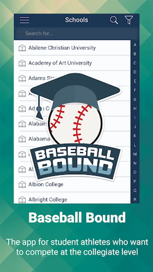 Baseball Bound is the recognized leader in providing up to date information for college Baseball recruits and their family. How does a potential college recruit know what school is right for them? Our easy to use app lets you locate any college Baseball program, coach, or school quickly and easily. Get important information such as school size, average GPA and test scores, cost to attend, financial aid and much more. All the information needed to contact coaches directly is here too! With Baseball Bound you’ll get more than a list of schools or coaches. You will have access to all the information you need to make an informed decision on which schools fit you athletically, academically, and financially. Next step, you’re Baseball Bound!