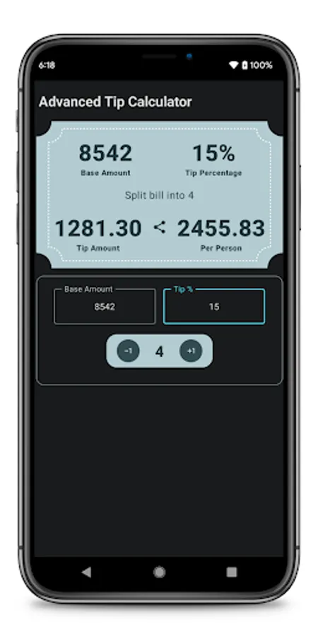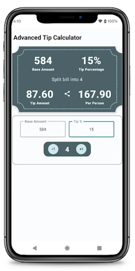 Calculating tips and dividing the amount among the group of people can be time-consuming. Now with this app, you can