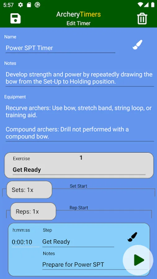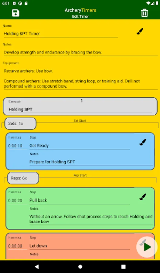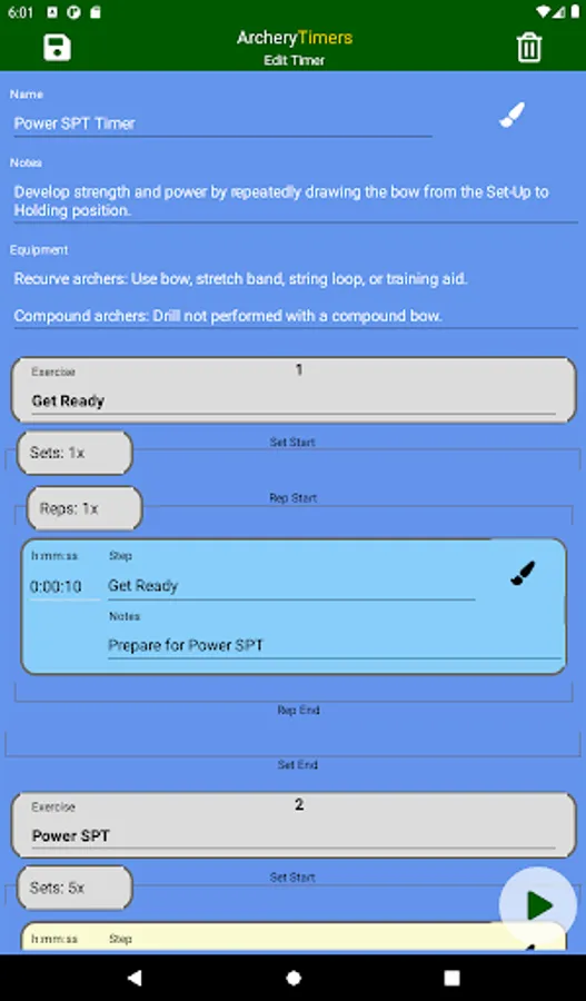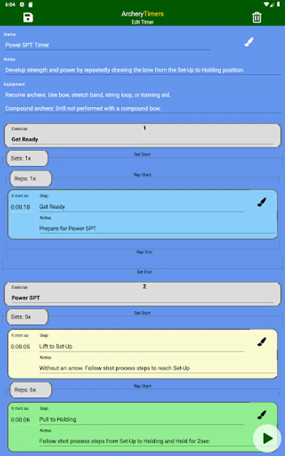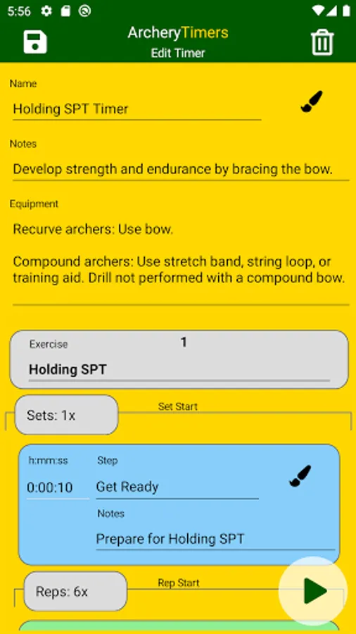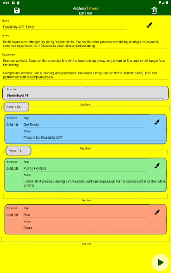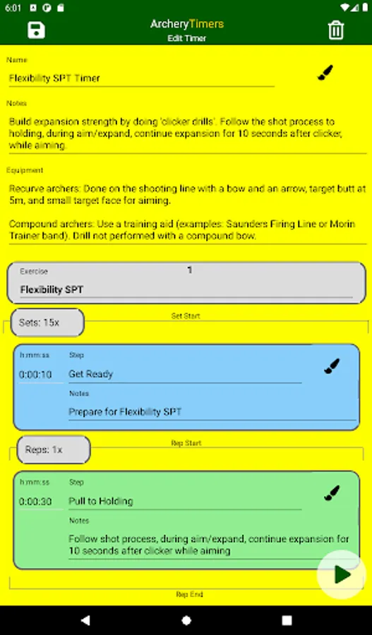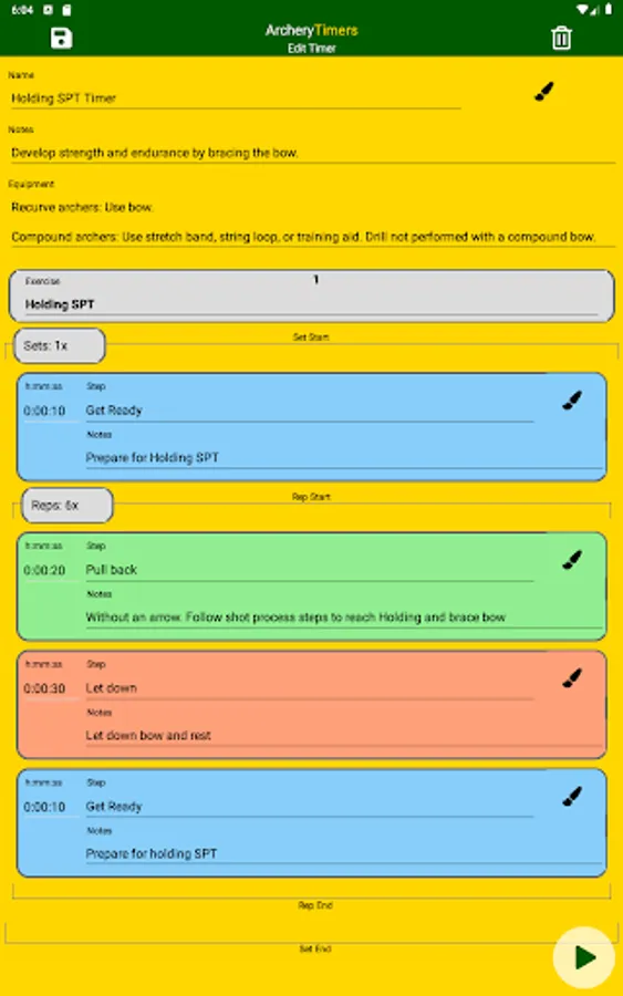 o Each timer has configurable Sets and Reps, plus configurable pre- and post- reps steps.