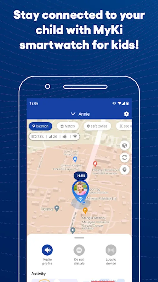 You can check the current location of your child wearing a MyKi device at any time. Depending on the model the devices use 2G or 4G/LTE technology, GPS, A-GPS, Wi-Fi and LBS technology to guarantee accurate real-time localization. Browse the history to track the device's locations for the past month.