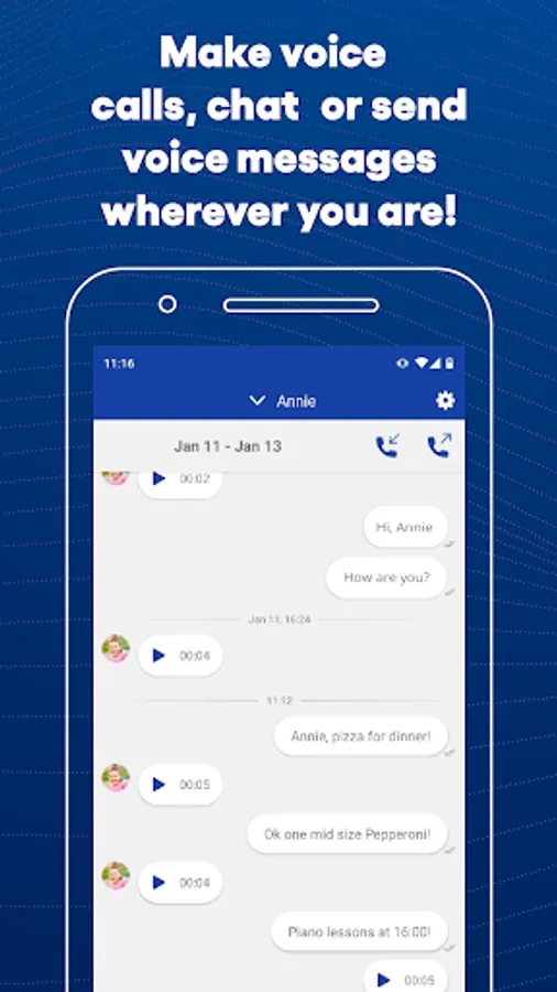 You can call the Watch by adding your phone number to the device's phone book supported in the MyKi application. Send voice and text messages to your child using the Chat menu in the application. The child may reply with a voice message, a phone call or a video call, depending on the MyKi smartwatch model.