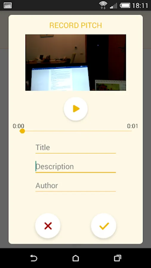 Users will learn how to compose a pitch, practice pitching and receive feedback. The app records a video of the user's pitch of 90 seconds or 3 minutes. Other students, mentors and teachers can provide constructive feedback through the app. Each pitch will be evaluated based on five parameters on a 1-5 scale.