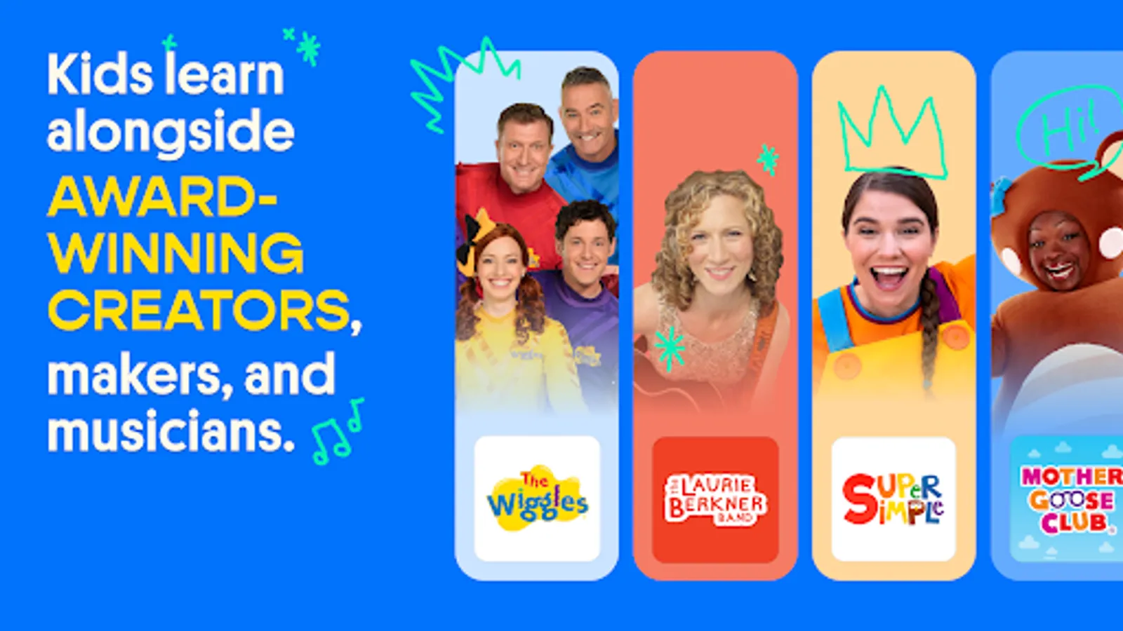 and many more, including grammy and emmy award-winning creators! New content is added regularly, transforming screen time into play time.