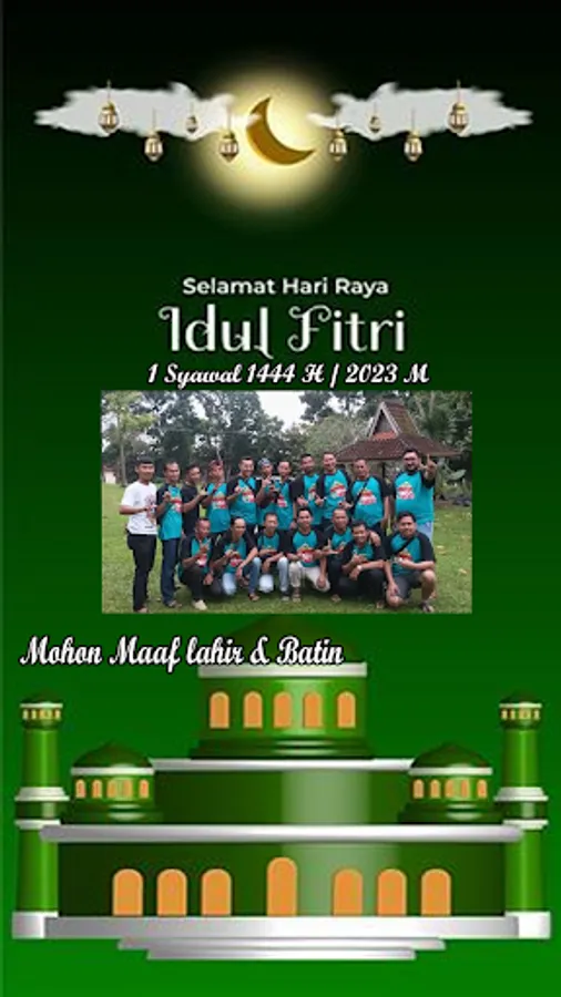 - Pilih foto atau selfie dari galeri telepon Anda dan hiasi foto Anda dengan Kartu & Bingkai Lebaran.