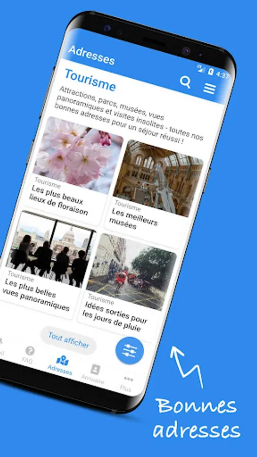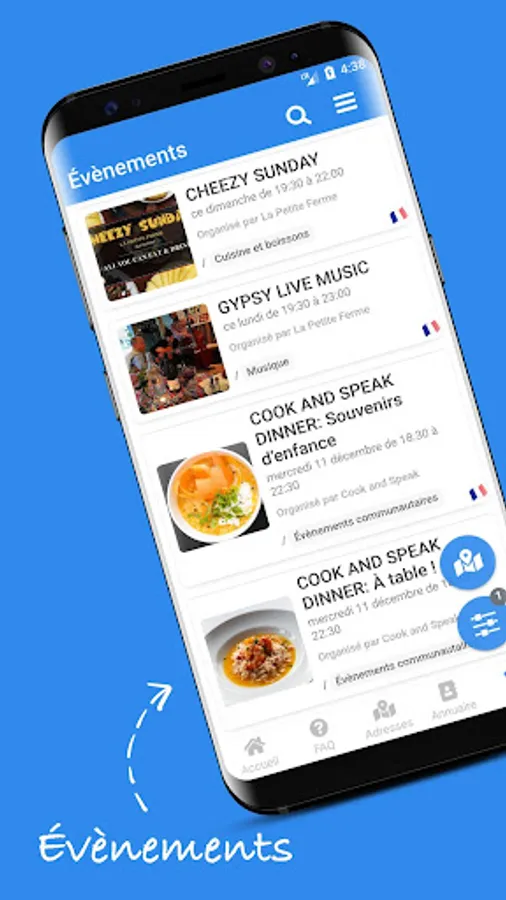 - Events: never miss a concert, barathon, vide-dressing, meetup for au pairs / entrepreneurs, etc.