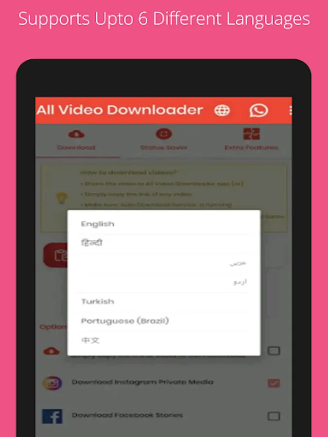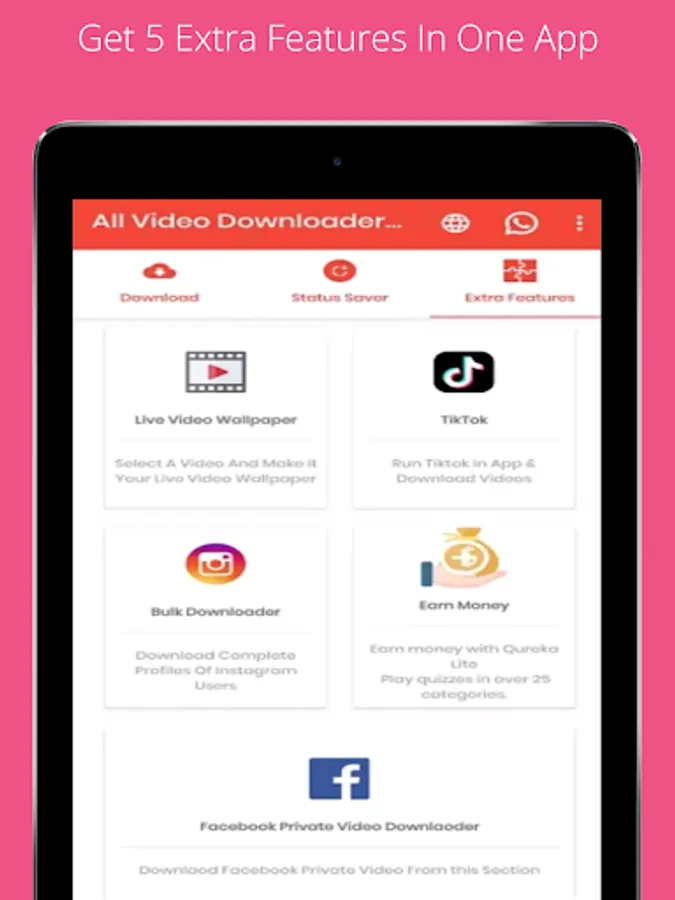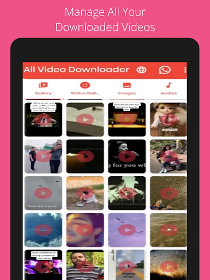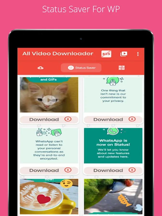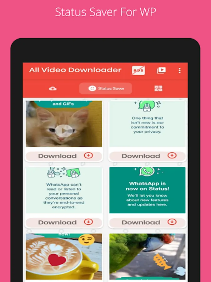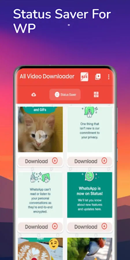 All Video Downloader is WhatsApp Status Saver. You can Save or download WhatsApp Status using WhatsApp Status Saver. To do this, you need to download status through WhatsApp, Open All Video Downloader and Save WhatsApp Status. It's the Best & Fastest Status Saver for WhatsApp.
