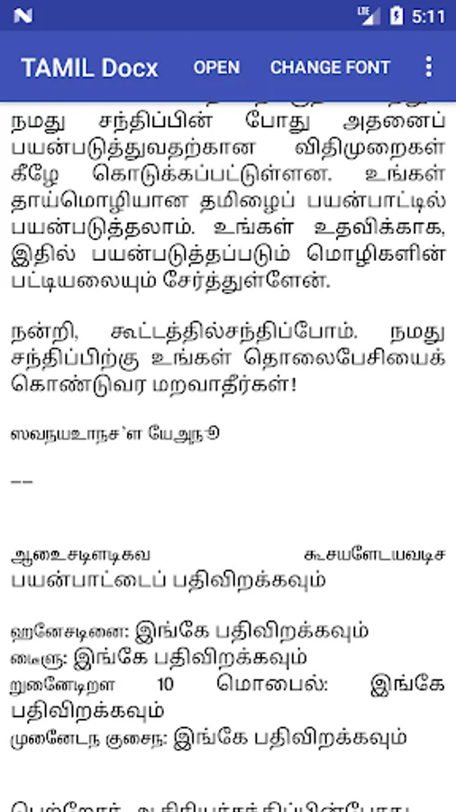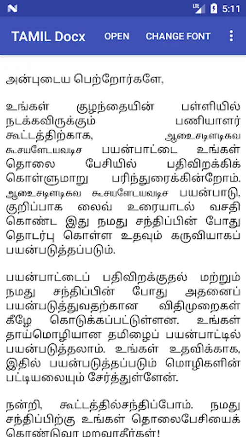 4. Now the .docx will be displayed in Tamil Text Viewer Docx