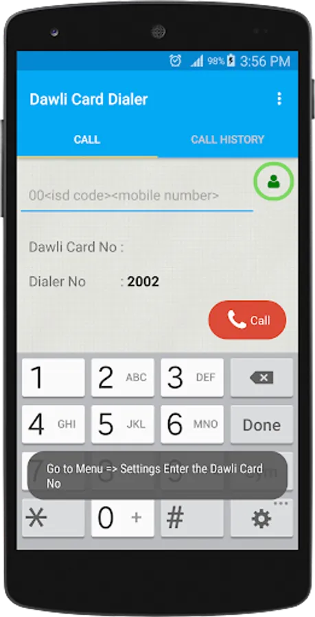Dawli Card Dialer Application will help you to make international calls using pre-configured PIN Number.