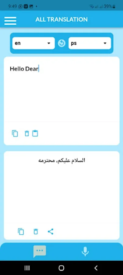 With the translator you can manually enter text or talk, speak to speak you have a translator from English to Pushto and many more languages available in your pocket anytime you want.