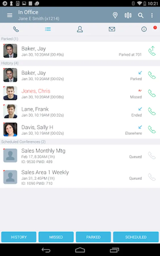 Allworx Reach brings the rich functionality of your Allworx phone to your mobile device. Create a SIP handset to place and receive calls, including Transfer, Park, and 3-way conference. You'll have easy access to Contacts (Allworx directory, personal, and contacts shared from other apps) and Call History, including Allworx users' Presence and Busy Lamp Field status. Manage your voicemails.