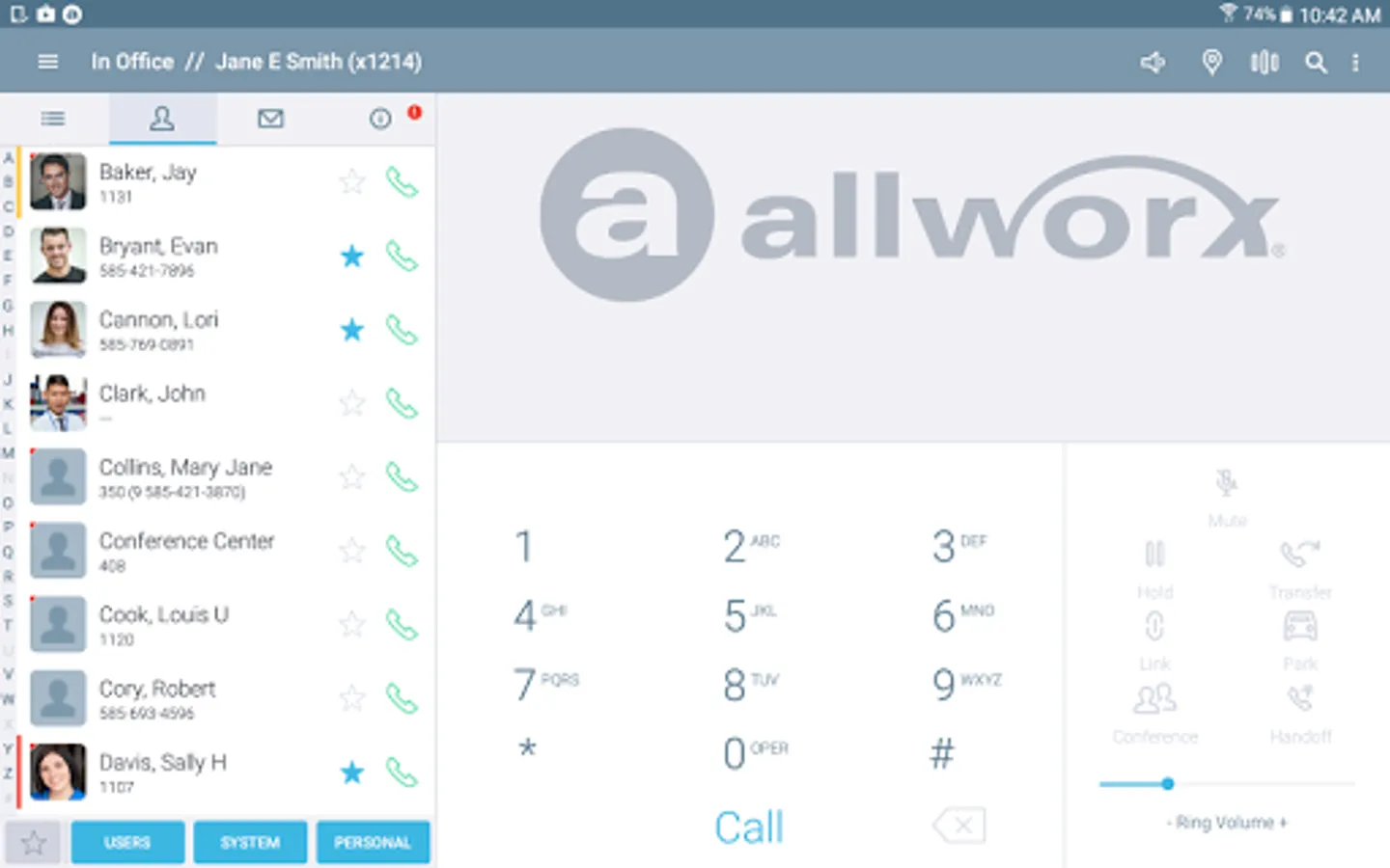 *** This app REQUIRES access to an Allworx server running software version 7.5 or higher -- and 7.5.10.4 or higher is strongly recommended. ***