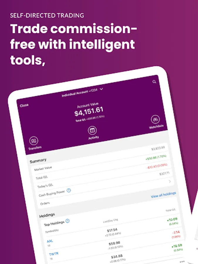 • Trade commission-free on eligible U.S. stocks, options, and ETFs