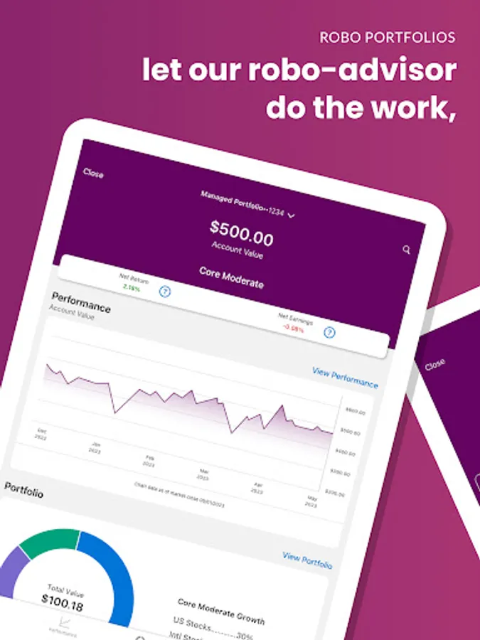 • Invest free of advisory fees with our cash-enhanced portfolio, or invest more of your money in the market with a market-focused portfolio (available for a fee)