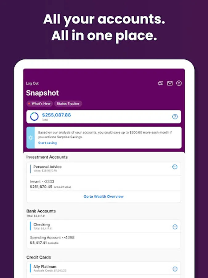 • Link and track financial accounts outside of Ally for a 360° view of your finances