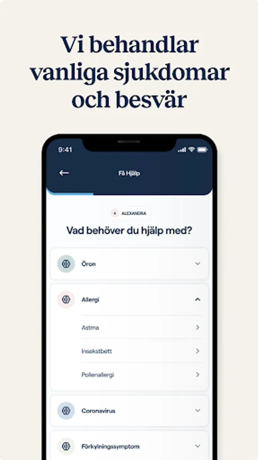 With Ally, you can book medical care for children over the age of 1 and get help with, among other things, allergies, stomach problems, skin rashes, fever, cough and pain. Our doctors and nurses have a good habit of working with children and young people and always ensure that your child and you as a guardian receive a safe, secure and personal treatment.