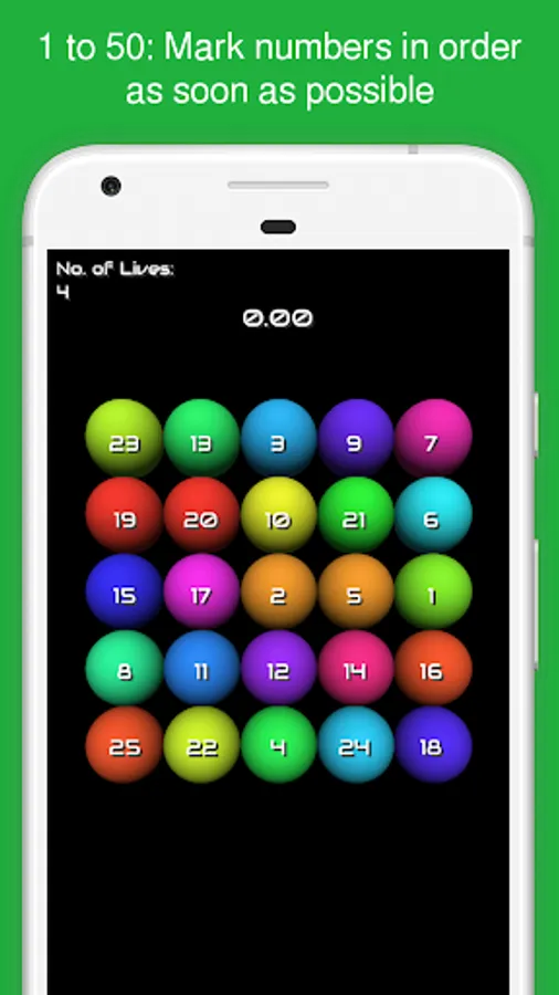 Just find and tap the numbers from 1 to 50 as soon as possible.