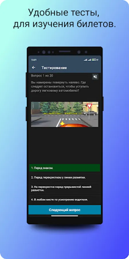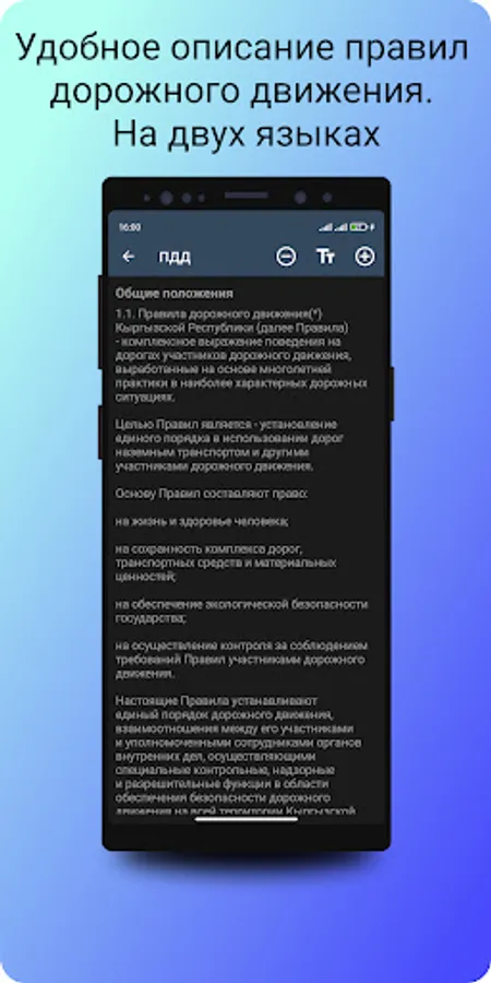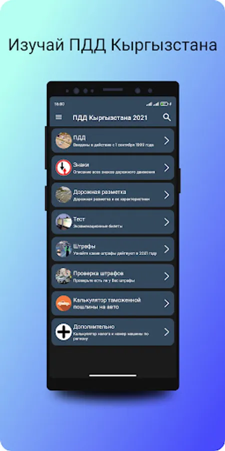A convenient application is an excellent simulator that will help you prepare for the theoretical exam on traffic rules in the traffic police of Kyrgyzstan.