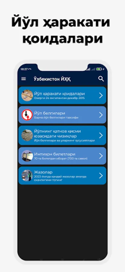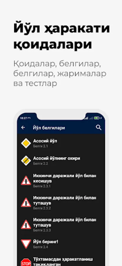 - Yul belgilari va belgilari: tavsifga ega bulgan zhoriy yul belgilari ruyhati