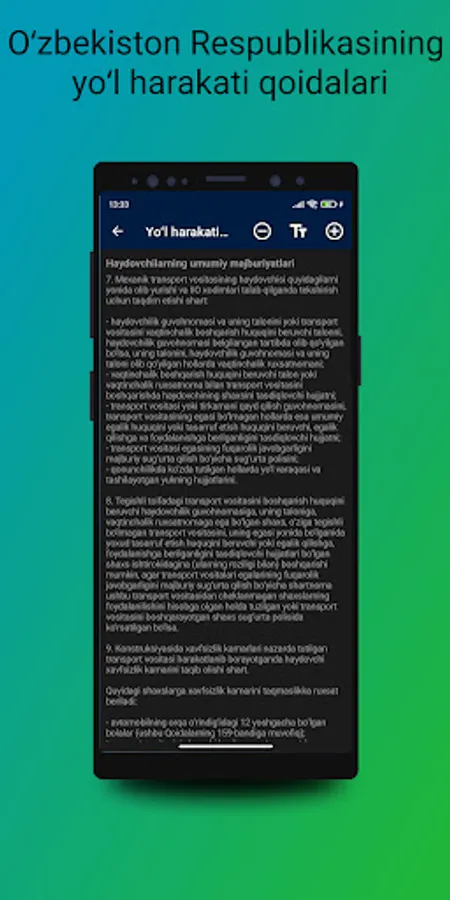 Yo'l harakati qoidalari O'zbekiston 2023 o'zbek tilida-avtomobilchilar uchun ariza, u bilan: