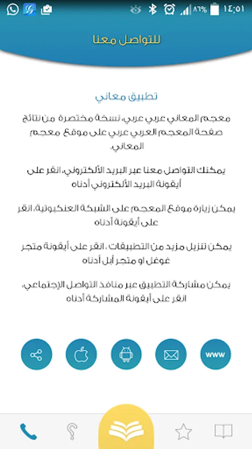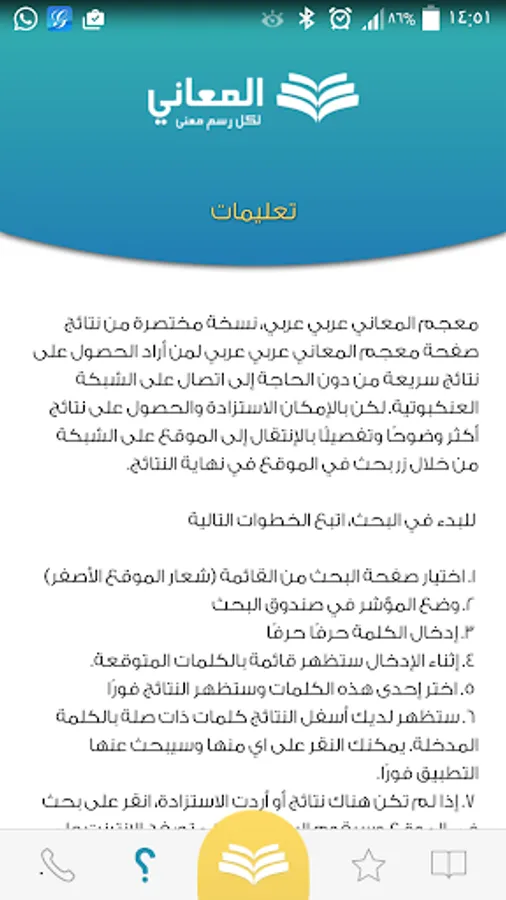 Almaany.com Arabic to Arabic dictionary for offline use. The application contains summarized results. with active internet connections, search can be broadband to online website.