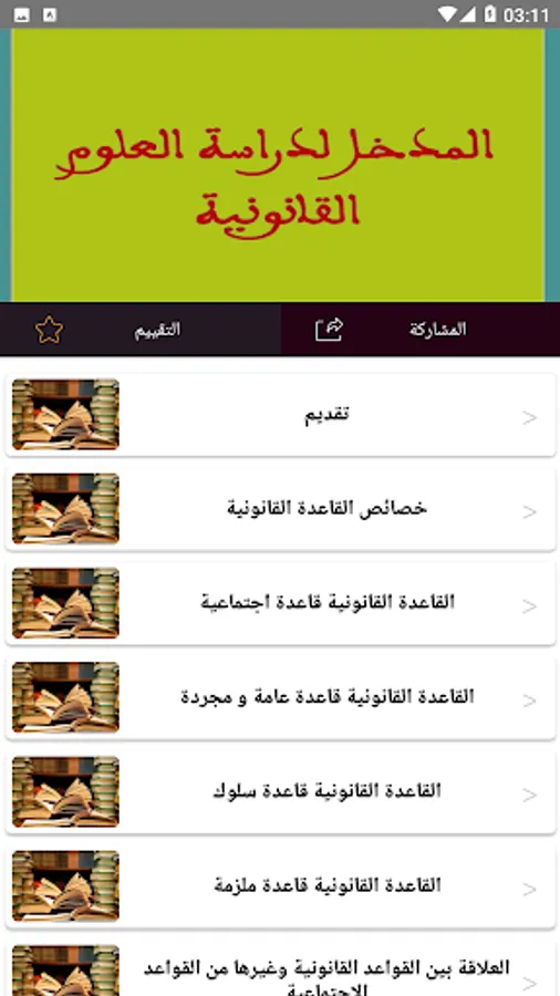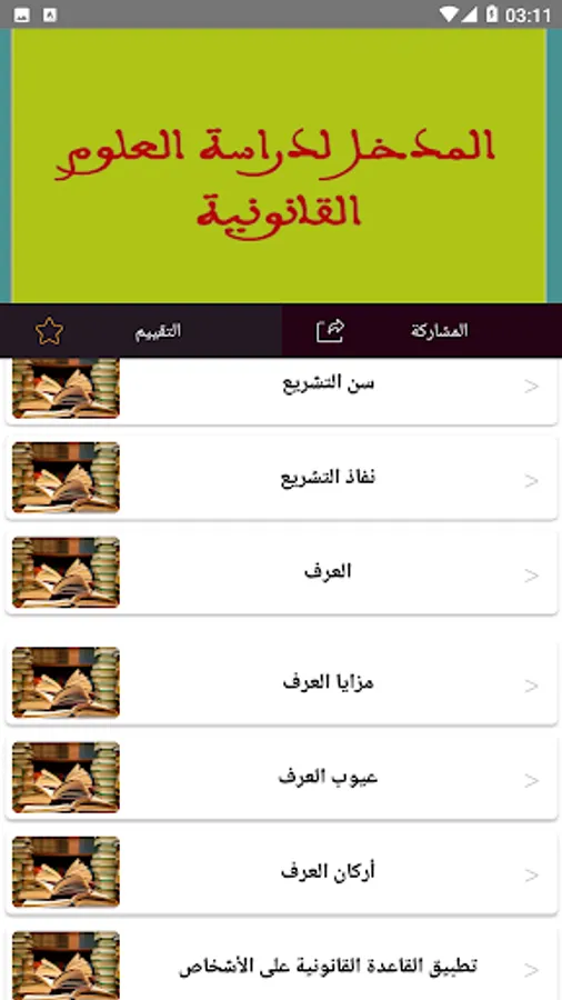 This application includes lectures on the entrance to the study of legal sciences - the theory of law - as it deals with the legal base, its characteristics, types, sources, validity and then abolition.