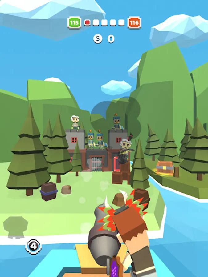 - Just aim and tap to fire - shoot down enemies, blow up bombs and collect treasures.