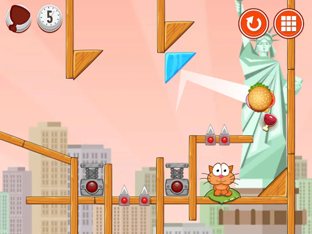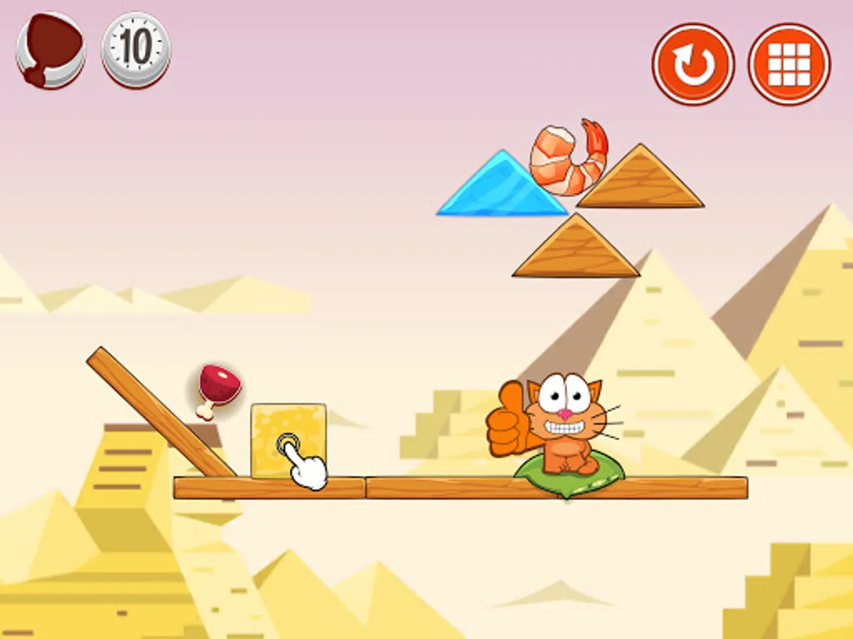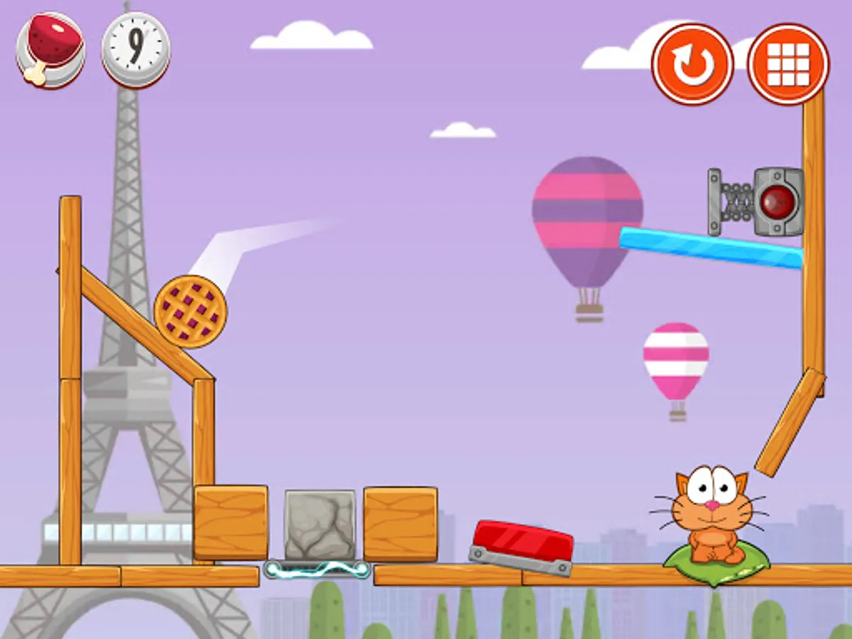 Use your logical thinking to solve addictive puzzles by breaking ice and sand blocks, trigger springs to help the Hungry Cat get his tasty burger, pie, shrimp or sushi.