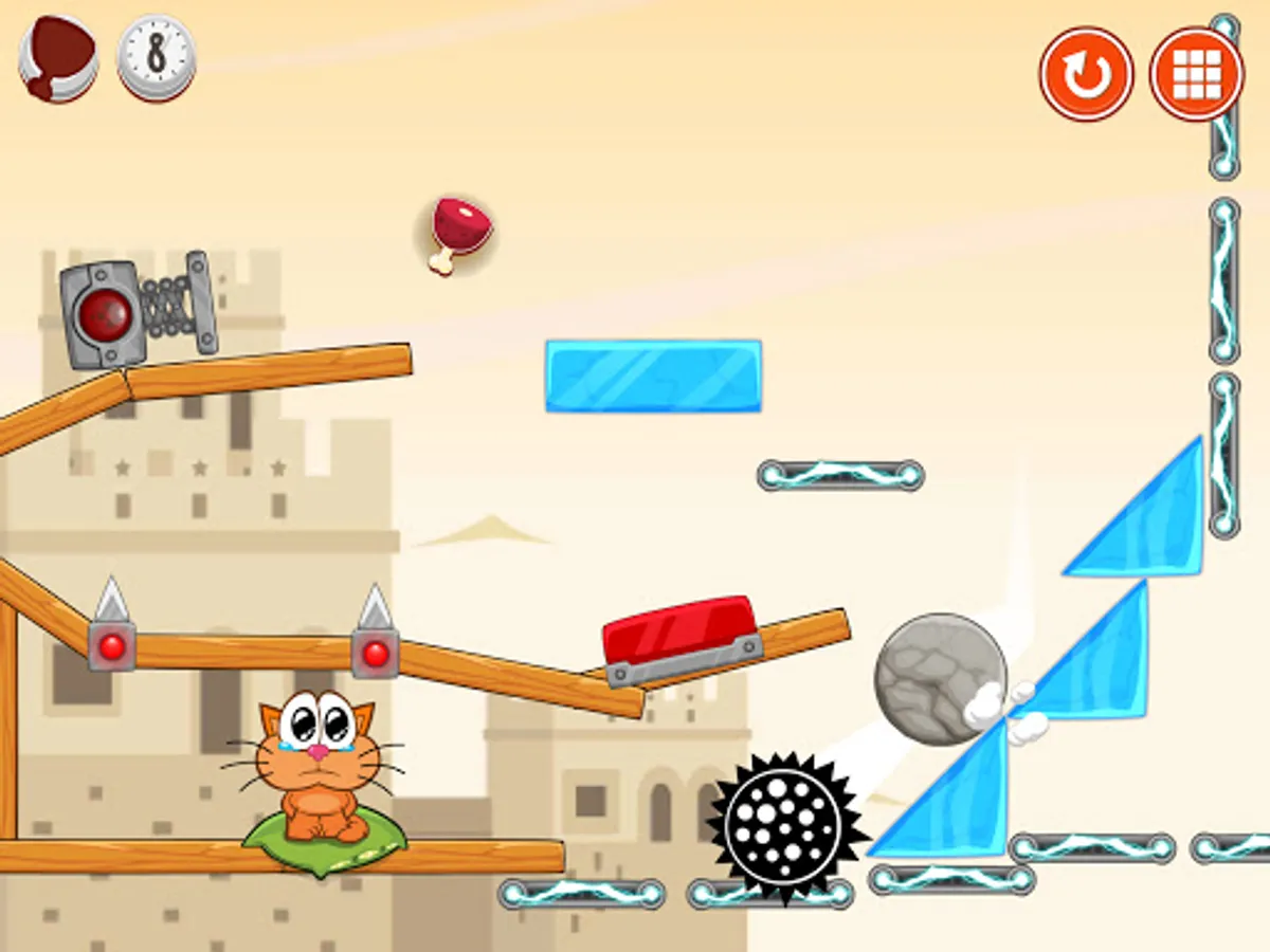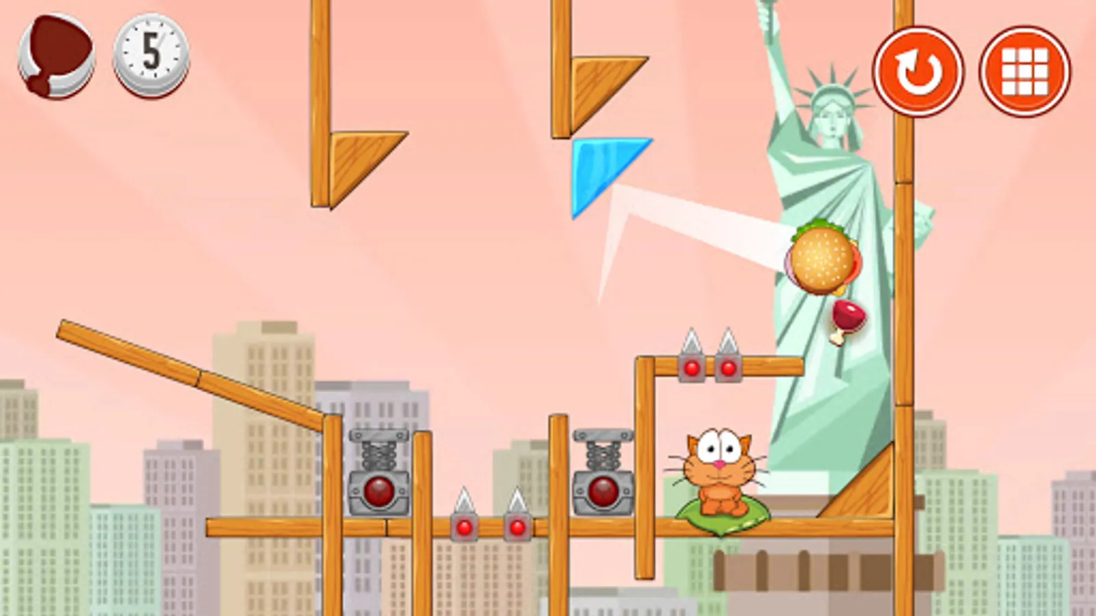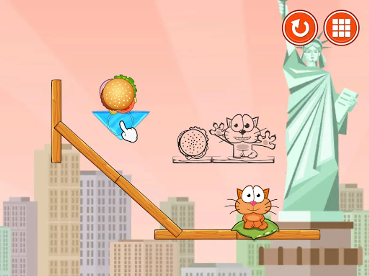 Use your logical thinking to solve addictive puzzles by breaking ice and sand blocks, trigger springs to help the Hungry Cat get his tasty burger, pie, shrimp or sushi.