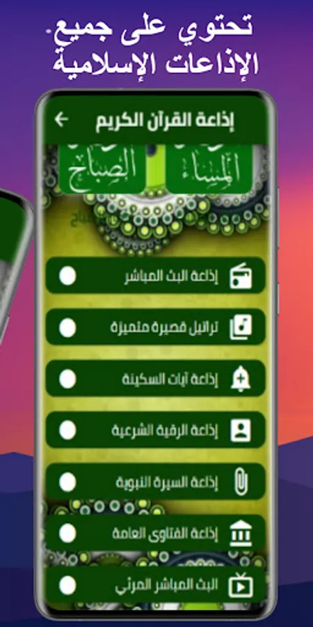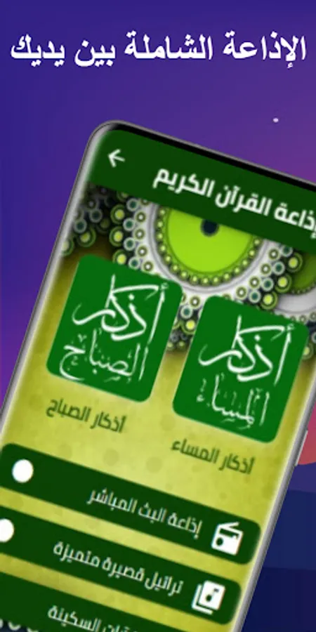 Our application, the Holy Qur’an Radio Radio application, the Holy Qur’an radio stations offers you a live broadcast of the Holy Qur’an radio stations for the most famous reciters, the Prophet’s Biography Radio, as well as the morning and evening remembrances, and it also contains the public fatwa radio