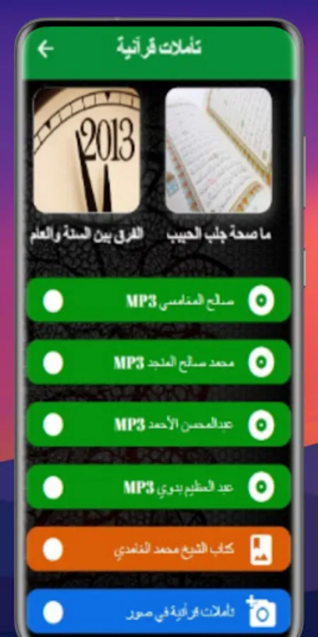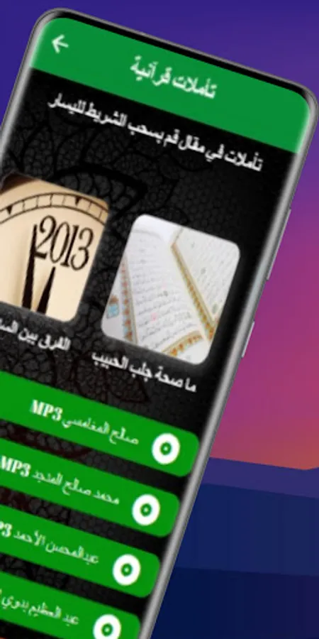 Reflections on the Holy Qur’an application provides you with audio, text and images meditations in the Holy Qur’an