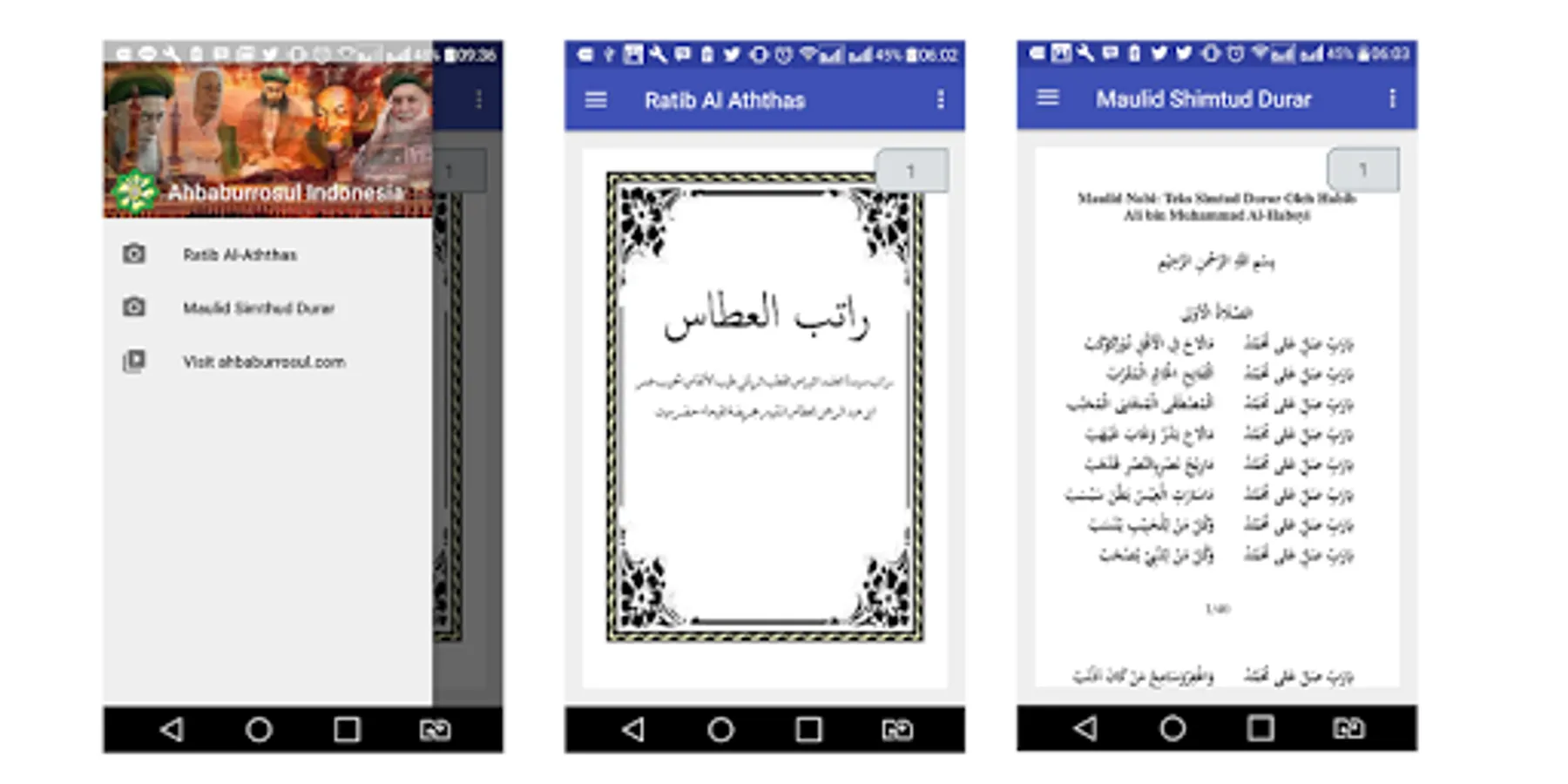 Software as a guide for jama-ah of majelis Ahbaburrosul Indonesia. Consists of news, schedule & ta`lim location also notes of du`a, including maulid Simtud Duraar and ratib Al-Aththaas.