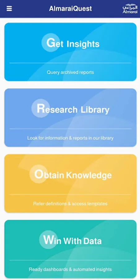 AlmaraiQuest app provides an ease of accessing all the available research or insights information across selected Almarai internal stakeholders at their finger tip.