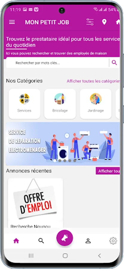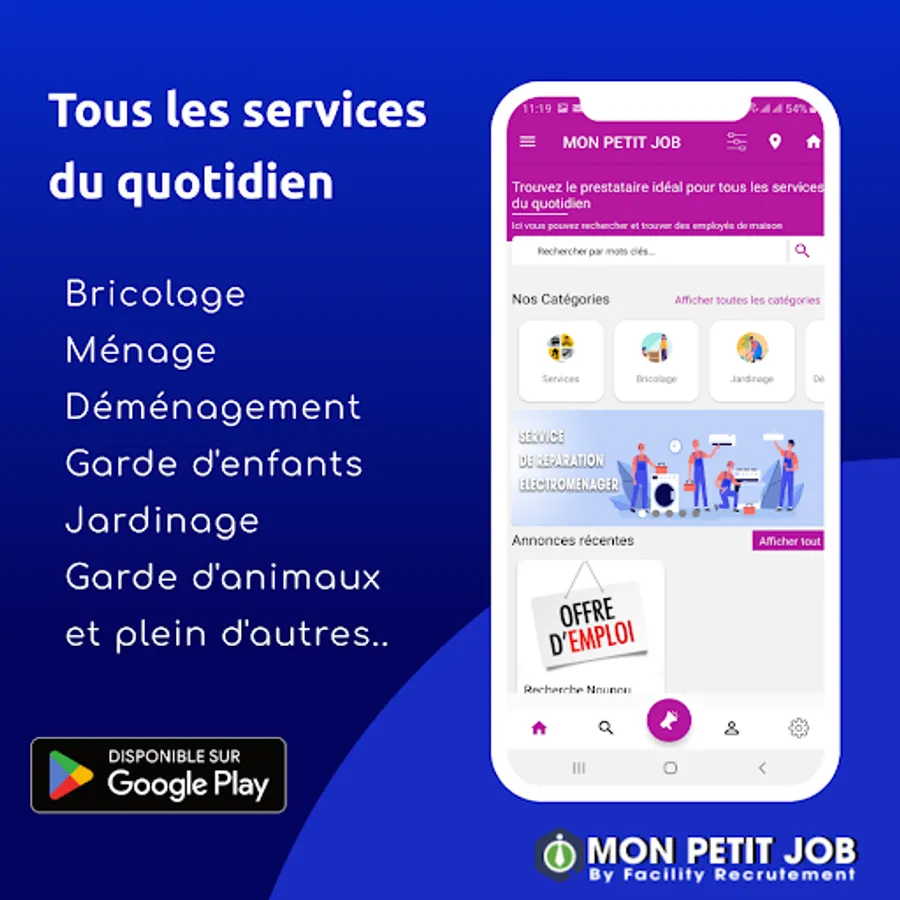 MON PETIT JOB is the platform that is revolutionizing the employment space in the Republic of Congo because thanks to this application you have the possibility of looking for domestic workers, craftsmen and Freelancers.
