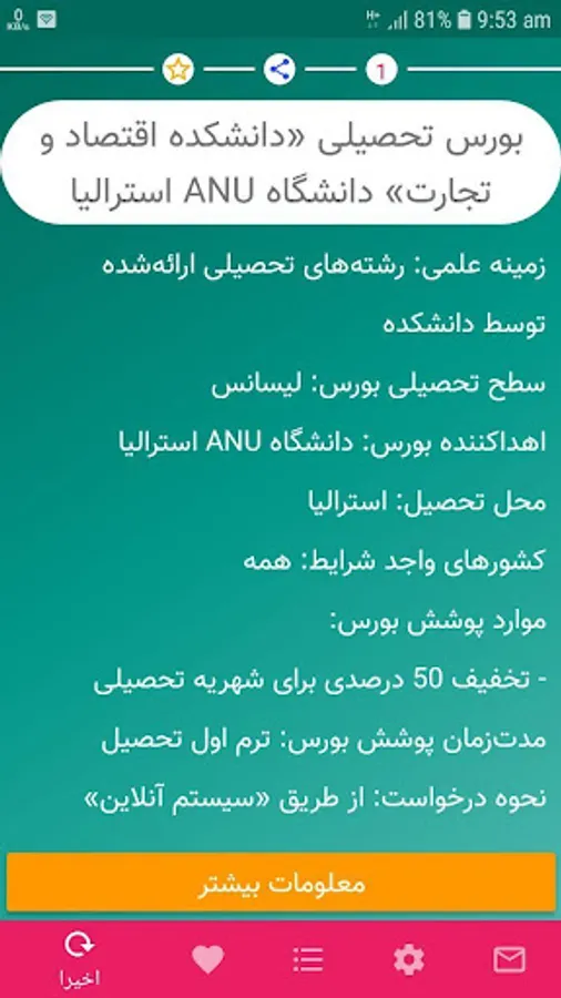 بورسیه های تحصیلی لیسانس، فوق Screenshots