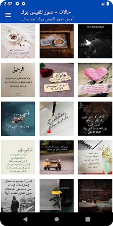 تطبيق صور وحالات للفيس بوك حديث 2024 يحتوي على مجموعة كبيرة من الصور