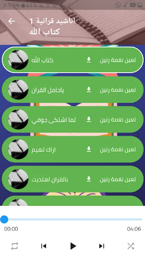 Beautiful Quranic songs application that is characterized by ease of use, distinguished and attractive content