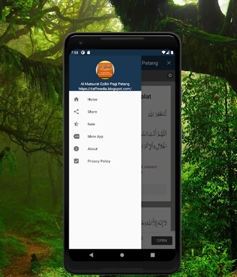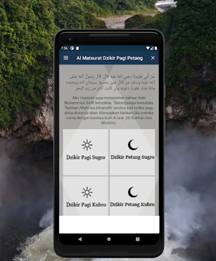 The application of Al Matsurat Morning and Evening Dhikr contains a collection of both sugro and kubro dhikr for morning and evening dhikr.