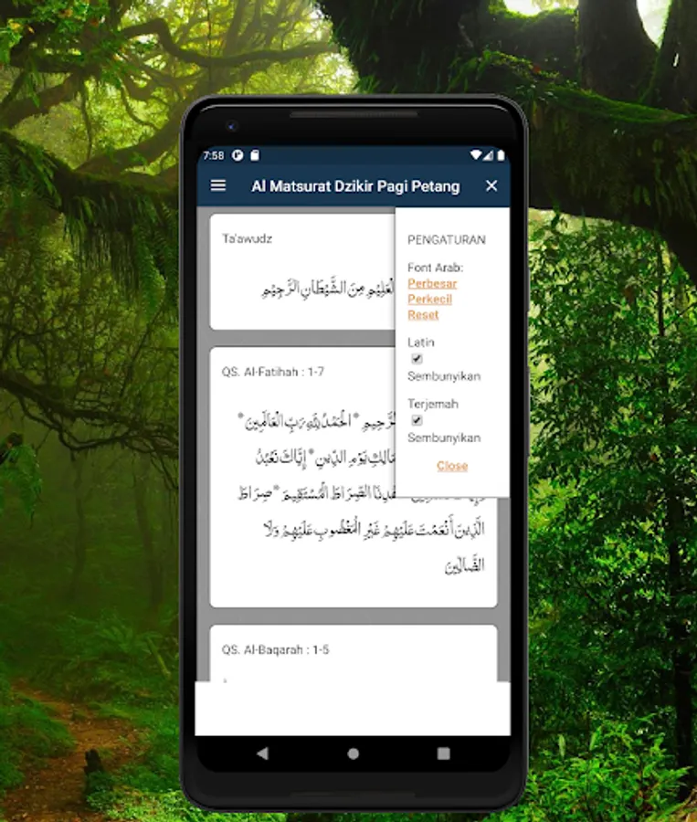- Latin and translation settings want to be displayed or hidden when reading dizikir