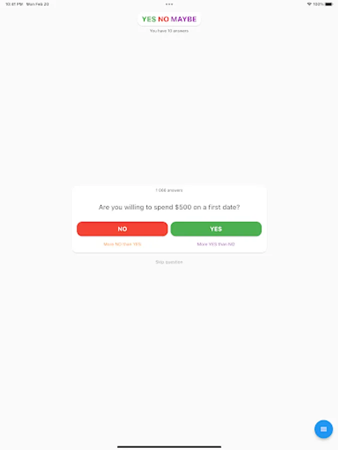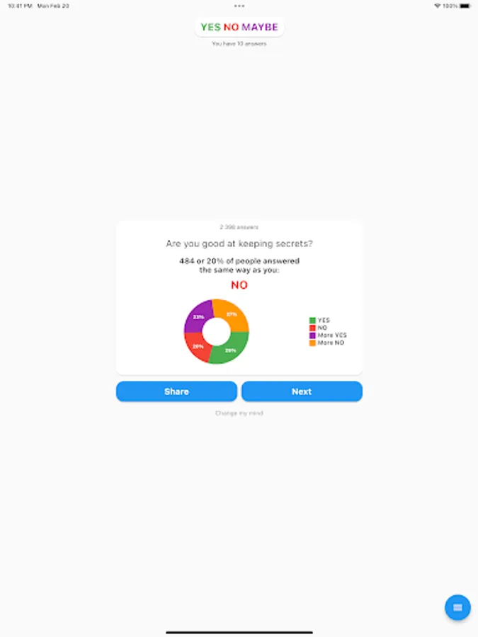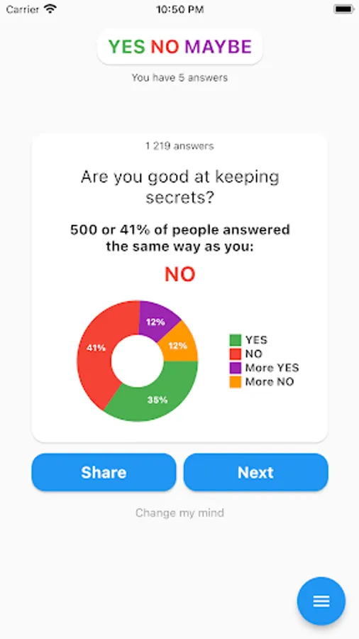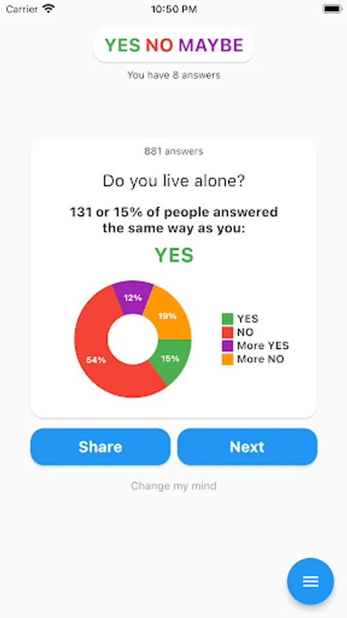 A simple game in which you have to answer questions and find out what others have answered.