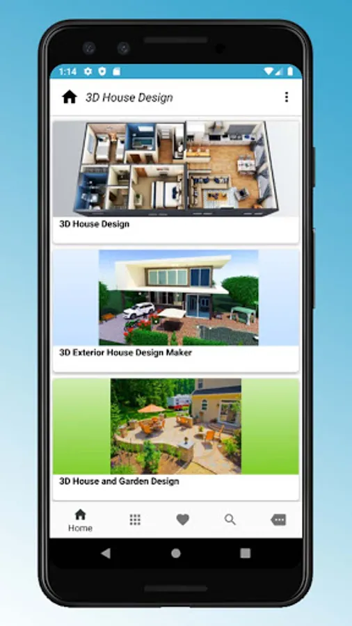 This application is an example of a 3d home design, in order to get interesting ideas for building your beloved house. This application only contains pictures that are displayed in a slide, not for designing a house