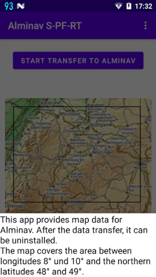 The map covers the area between longitudes 8° und 10° and the northern latitudes 48° and 49°.