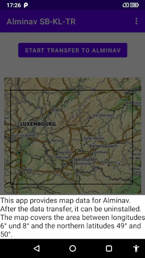 The map covers the area between longitudes 6° und 8° and the northern latitudes 49° and 50°.