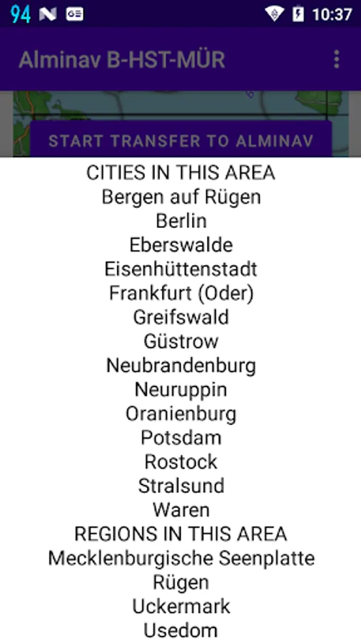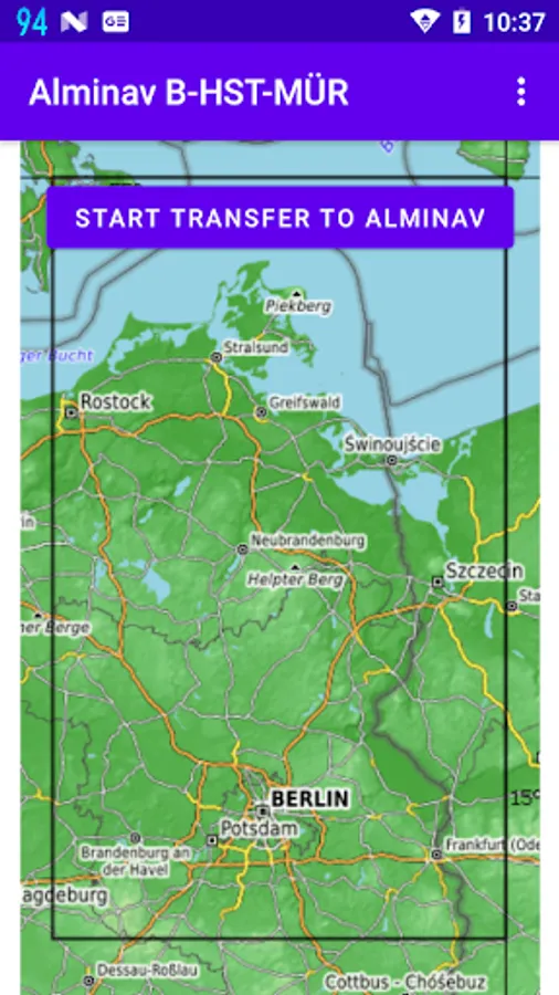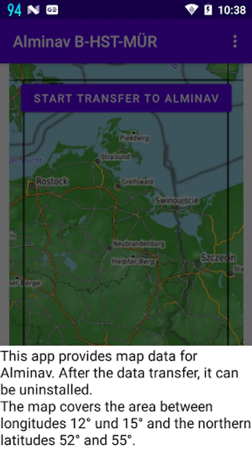 The map covers the area between longitudes 12° und 15° and the northern latitudes 52° and 55°.