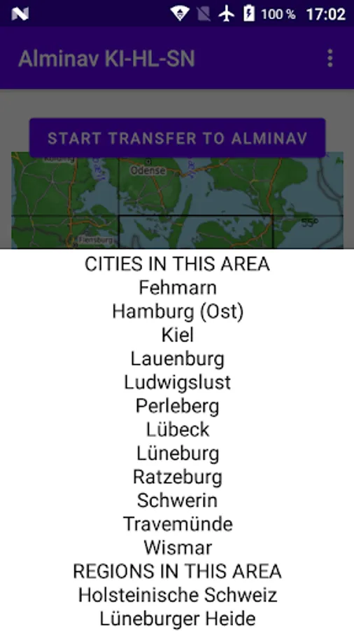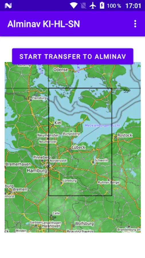 The map covers the area between longitudes 10° und 12° and the northern latitudes 53° and 55°.
