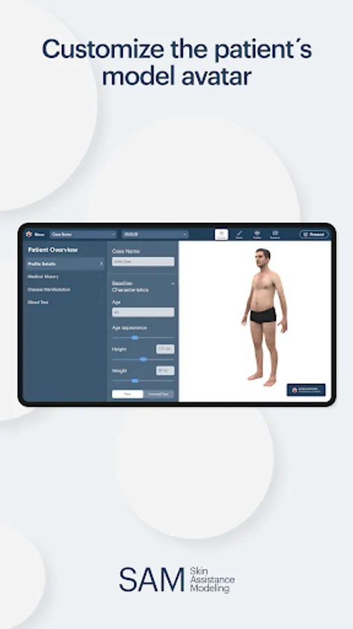 Visualize, share and present your clinical cases with the Skin Assistance Modeling (SAM) technology. An app for healthcare professionals, a breakthrough innovation in the field of dermatology.