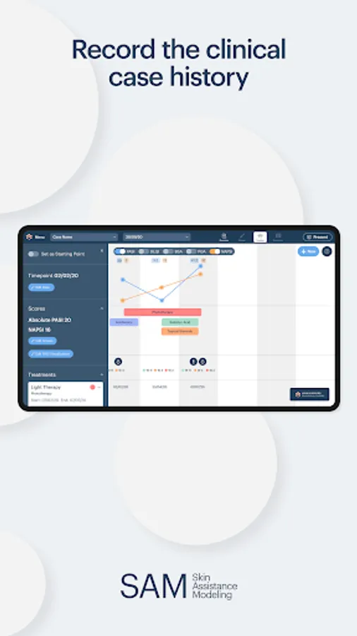 SAM is a dynamic, user-friendly healthcare app, developed and designed for the dermatological community. The platform offers cutting-edge computational tools, assisting medical experts in the visualization and tracking of their patient´s progress and pathology. An intuitive and interactive way to share clinical cases, promote learning and foster discussion amongst healthcare professionals.